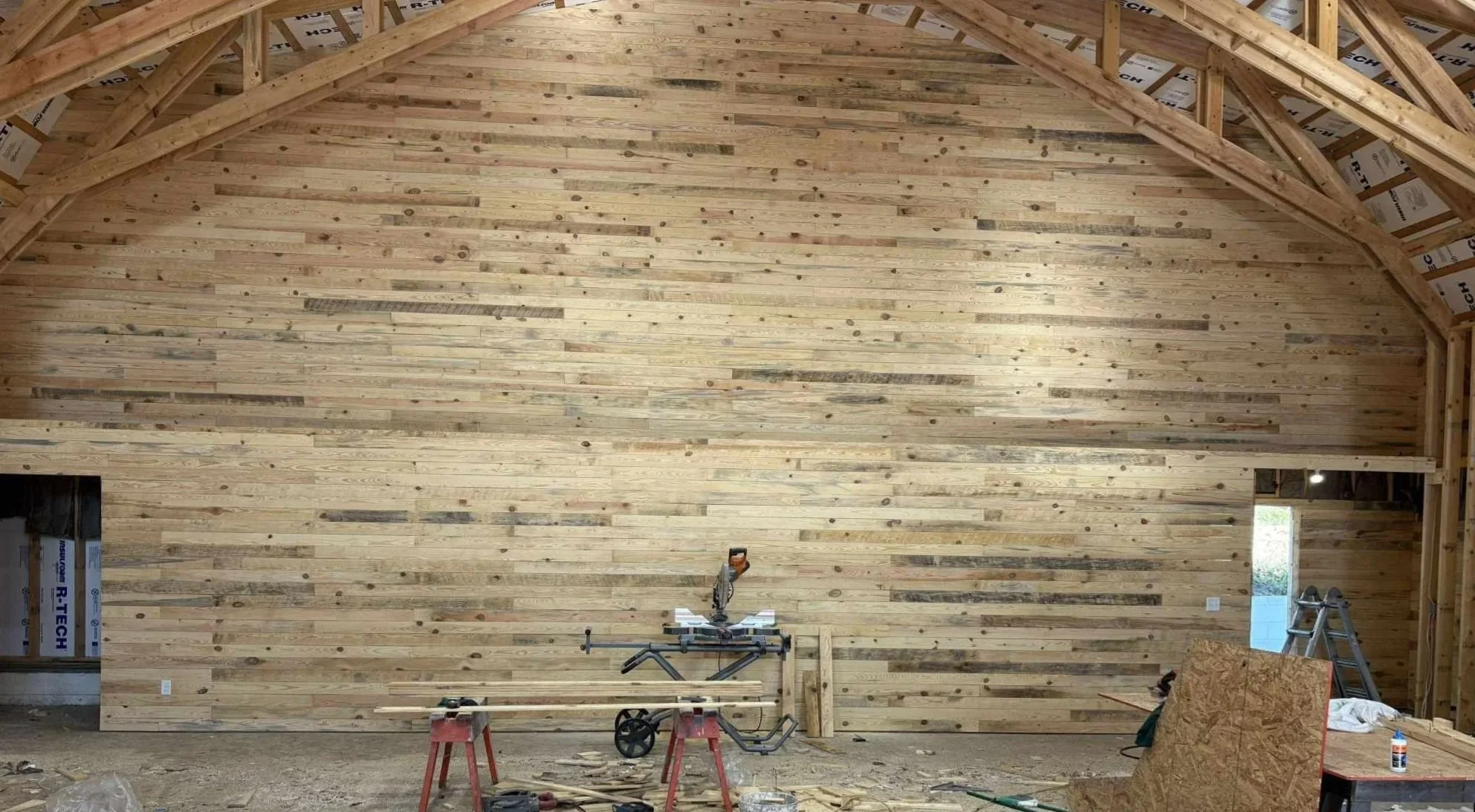 Bundles of rough-sawn yellow pine, perfect for rustic walls, ceilings, and trim!